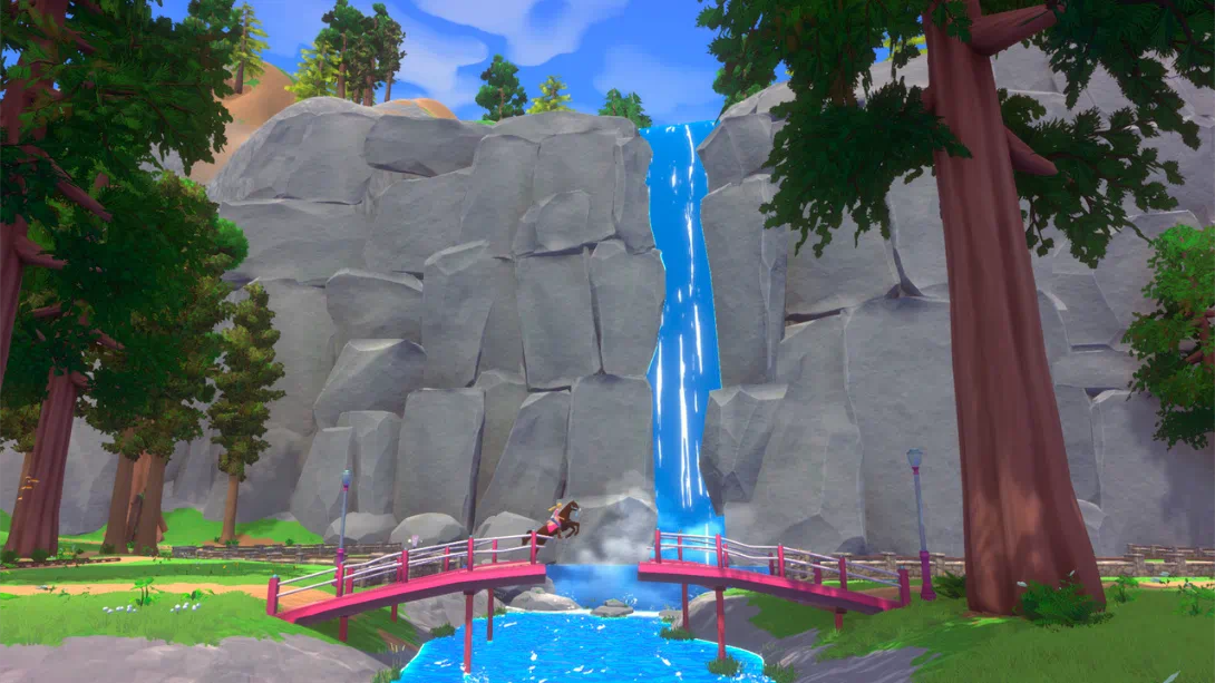 《Barbie™ Horse Trails》是一款以芭比为主题的开放世界休闲冒险游戏,玩家可以扮演芭比角色布鲁克林和马里布,在风光如画的坎特伯雷步道公园中骑马探索、完成任务并享受轻松治愈的体验。