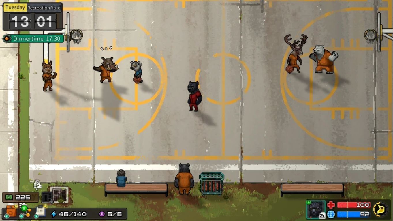 玩家需参与监狱日常工作(如洗衣、维修)以赚取资源,过程中穿插迷你游戏提升趣味性。同时需管理角色心态、健康与声望,避免因违规被关禁闭或引发冲突。