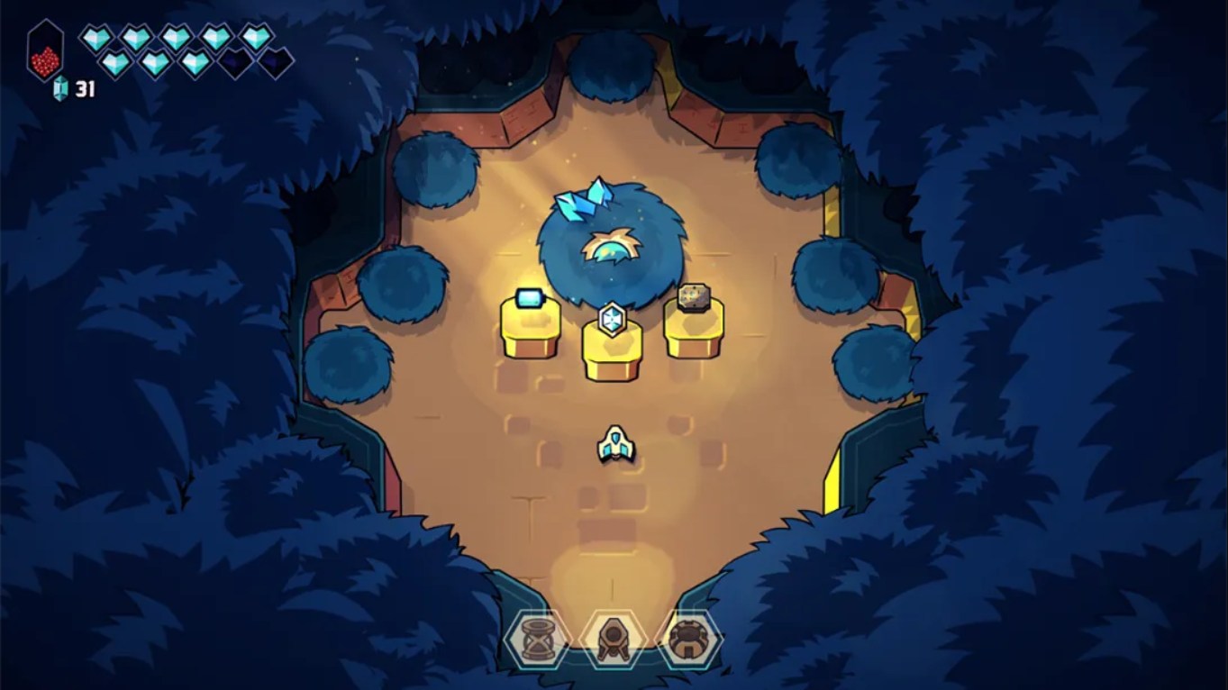 初始阶段飞船能力有限,需通过击败敌人、收集水晶能量来升级属性。每满一格经验可获得技能点,用于强化移动速度、武器等级、能量上限等。此外,击败地牢首领后可获得“原始力量”,解锁冲刺、二段跳等关键能力,推动探索进程。